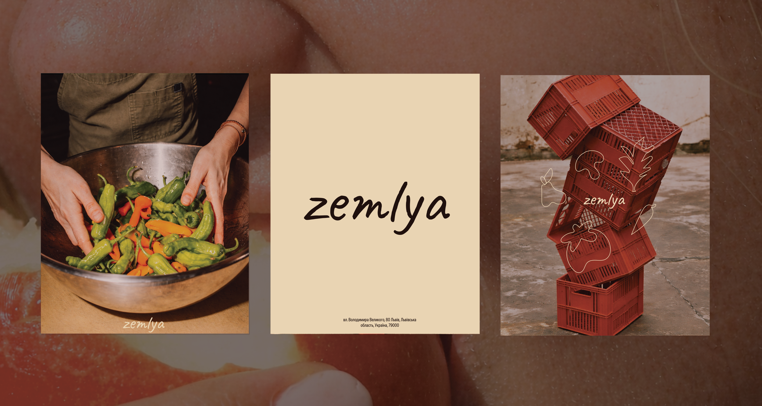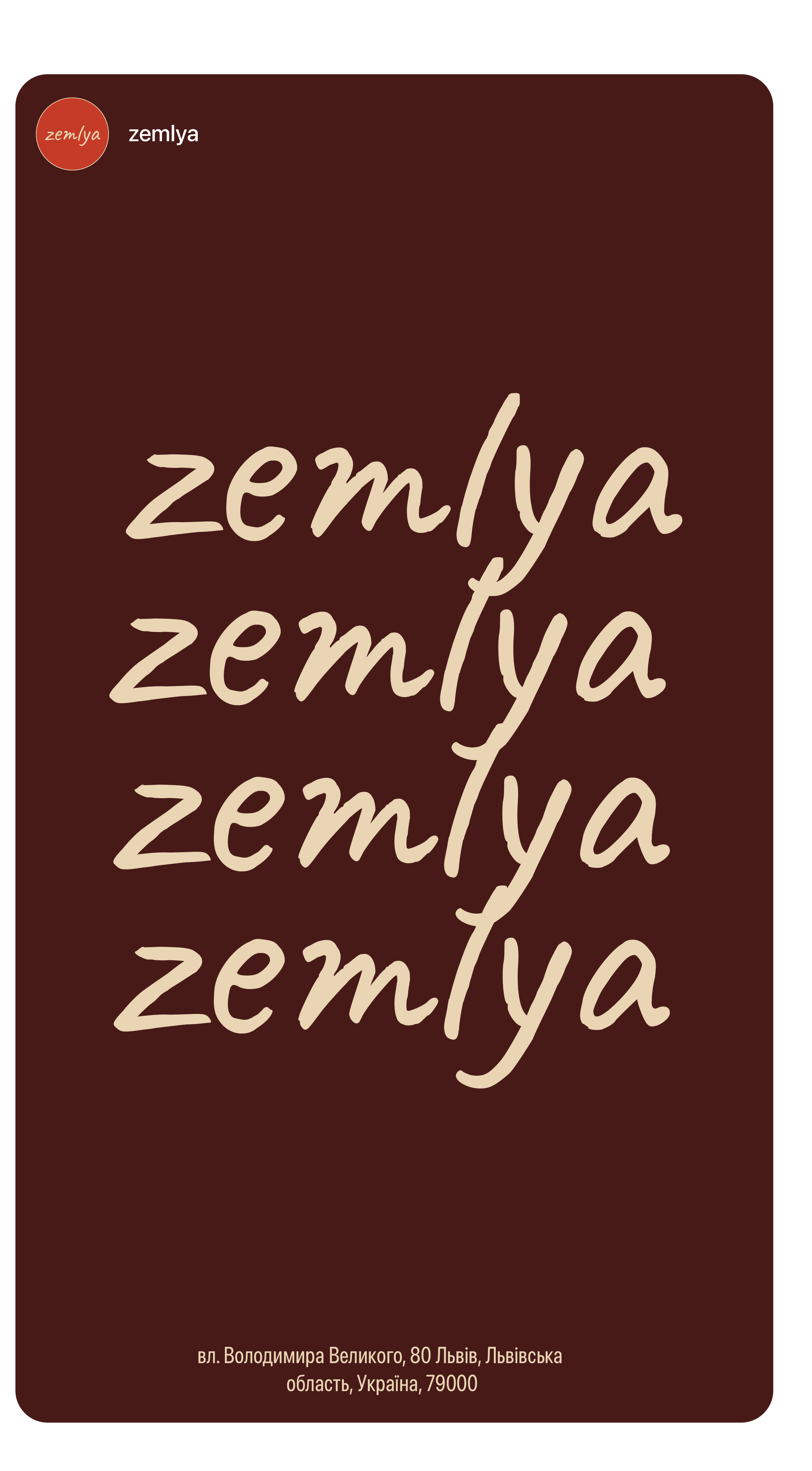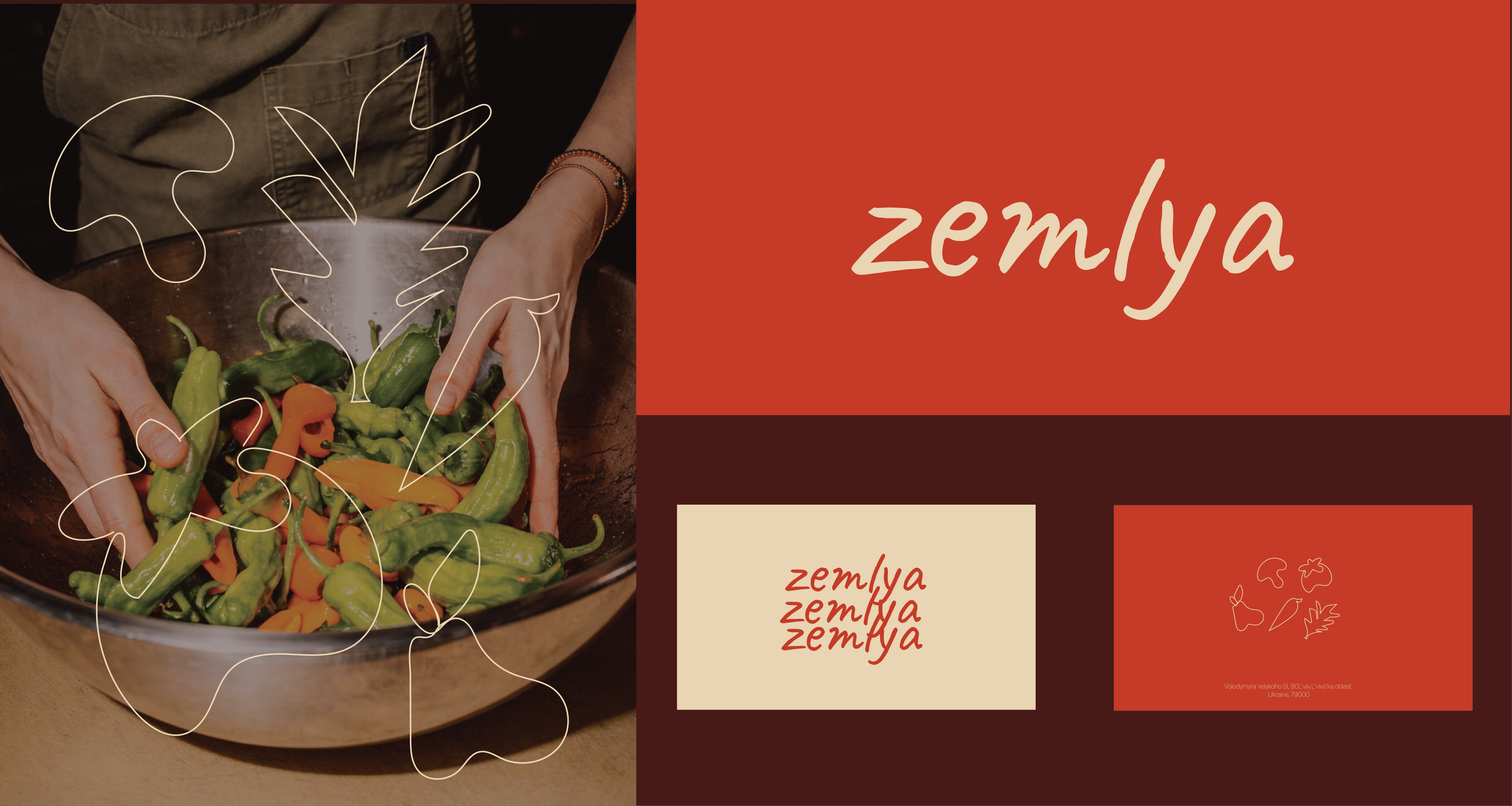 ZEMLYA is a farm-to-table restaurant in Ukraine focused on seasonal cooking, local sourcing, and simple, honest food, for which a complete brand identity was developed including naming, visual direction, tone of voice, menu design, and copywriting. The name “ZEMLYA” reflects the restaurant’s approach of working directly with local farmers. The visual identity is minimal and grounded, inspired by natural materials and Ukrainian landscapes, using a neutral color palette, refined typography, and clean editorial layouts to create a contemporary yet warm atmosphere across print and digital applications.
